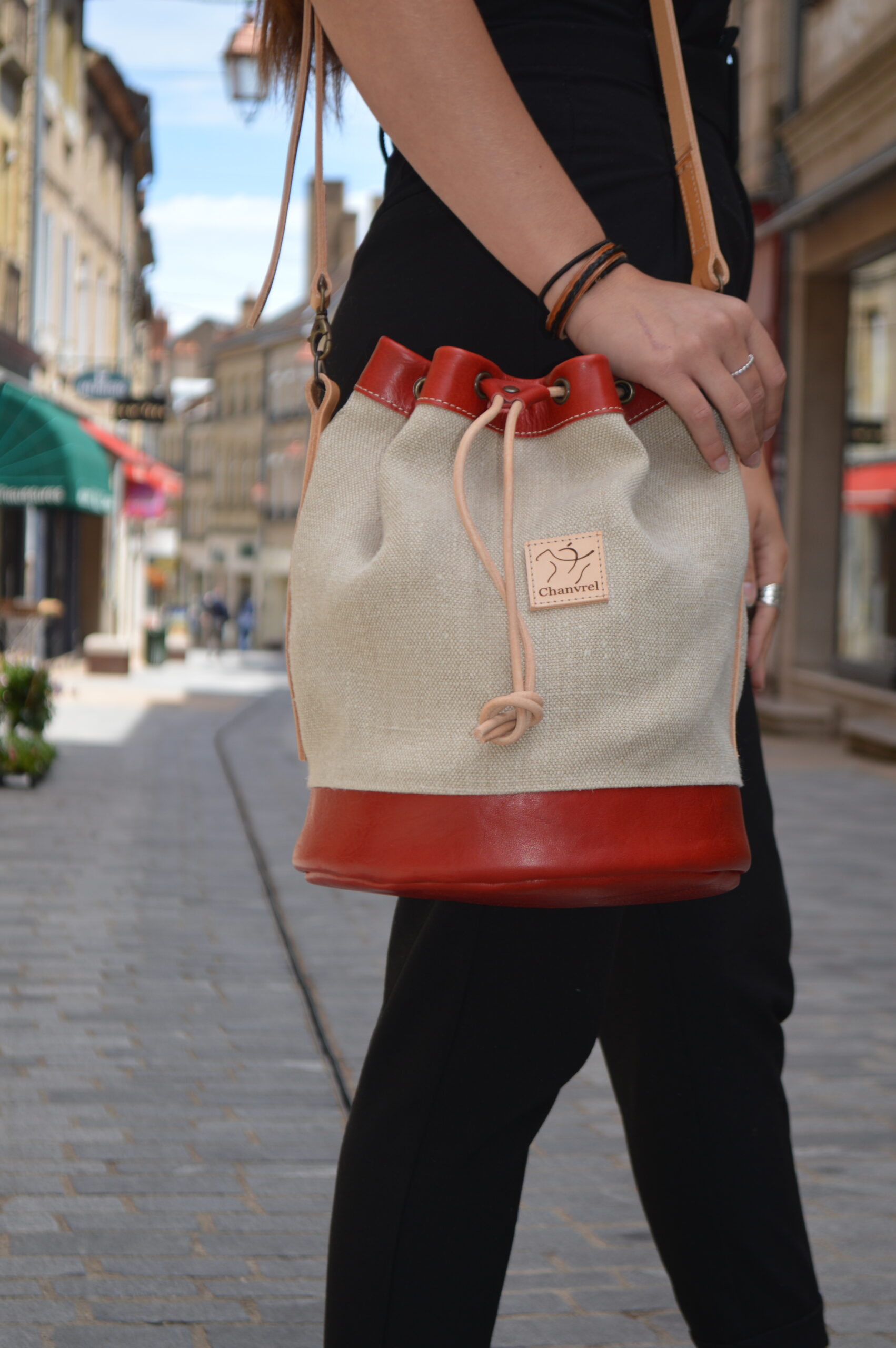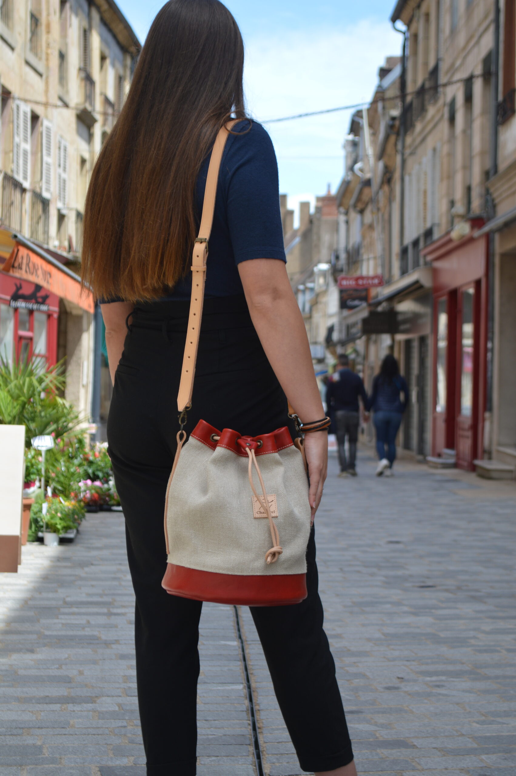 La bandoulière est toujours en cuir naturel (non teinté) et se patine avec le temps.