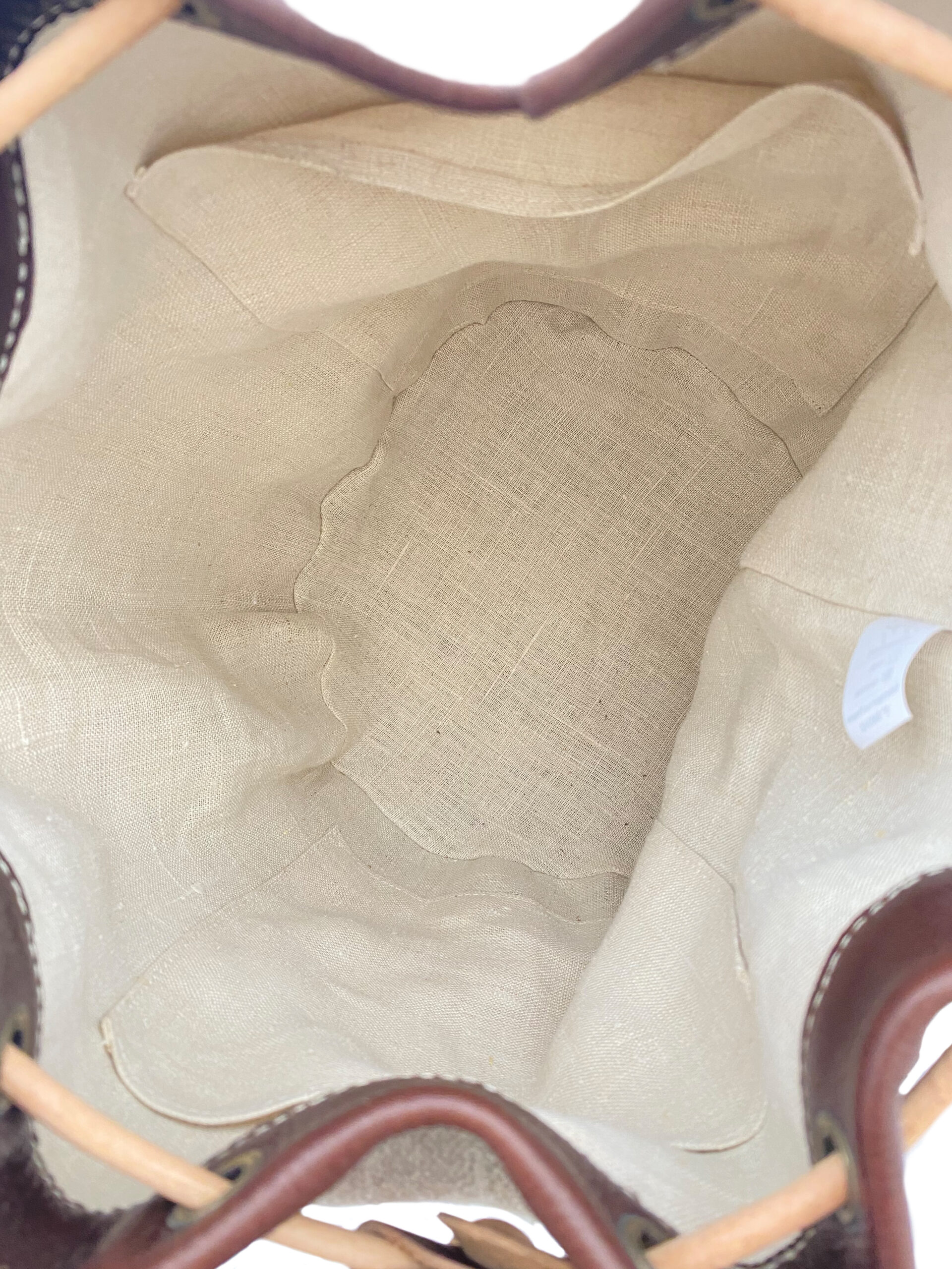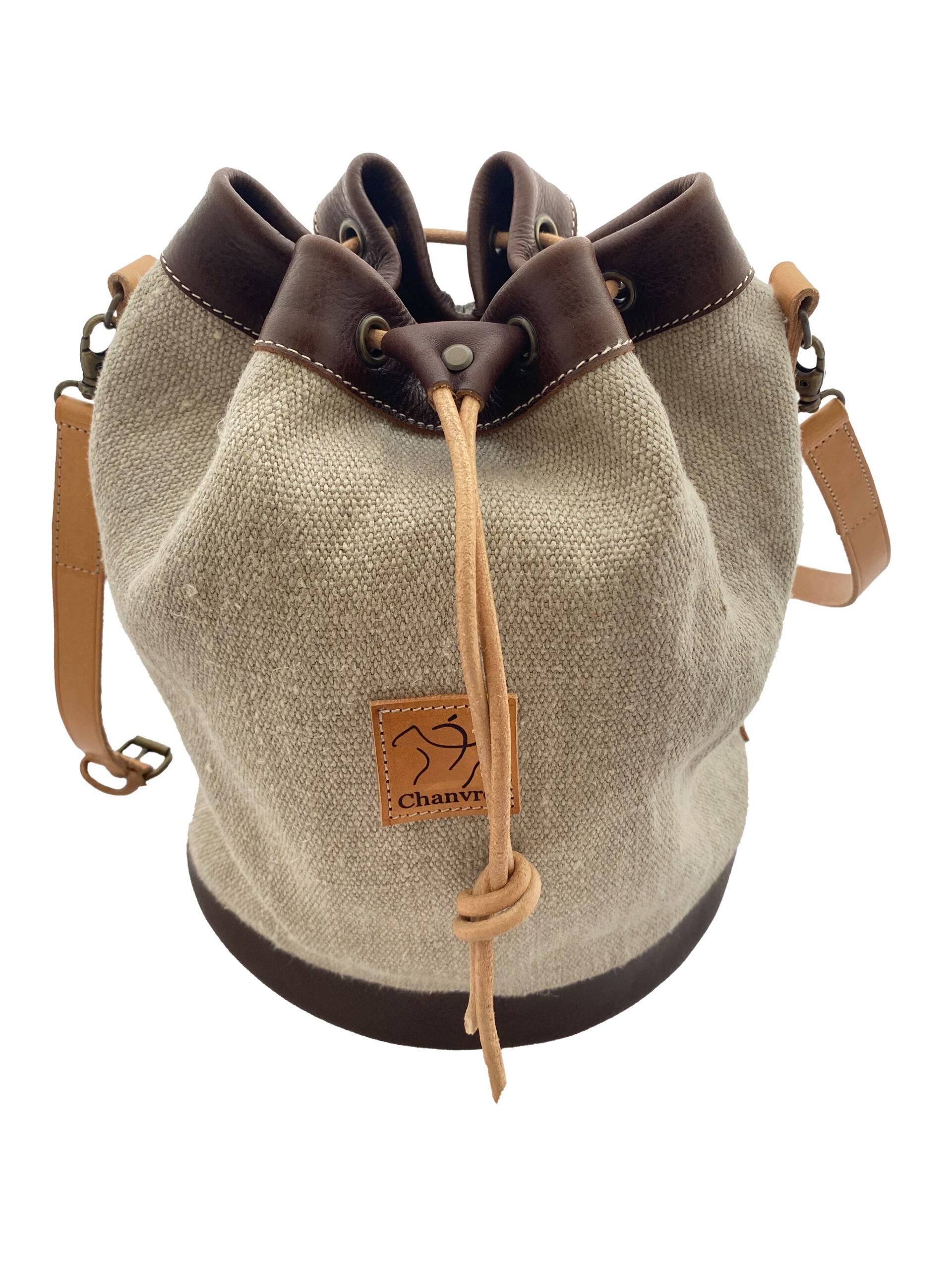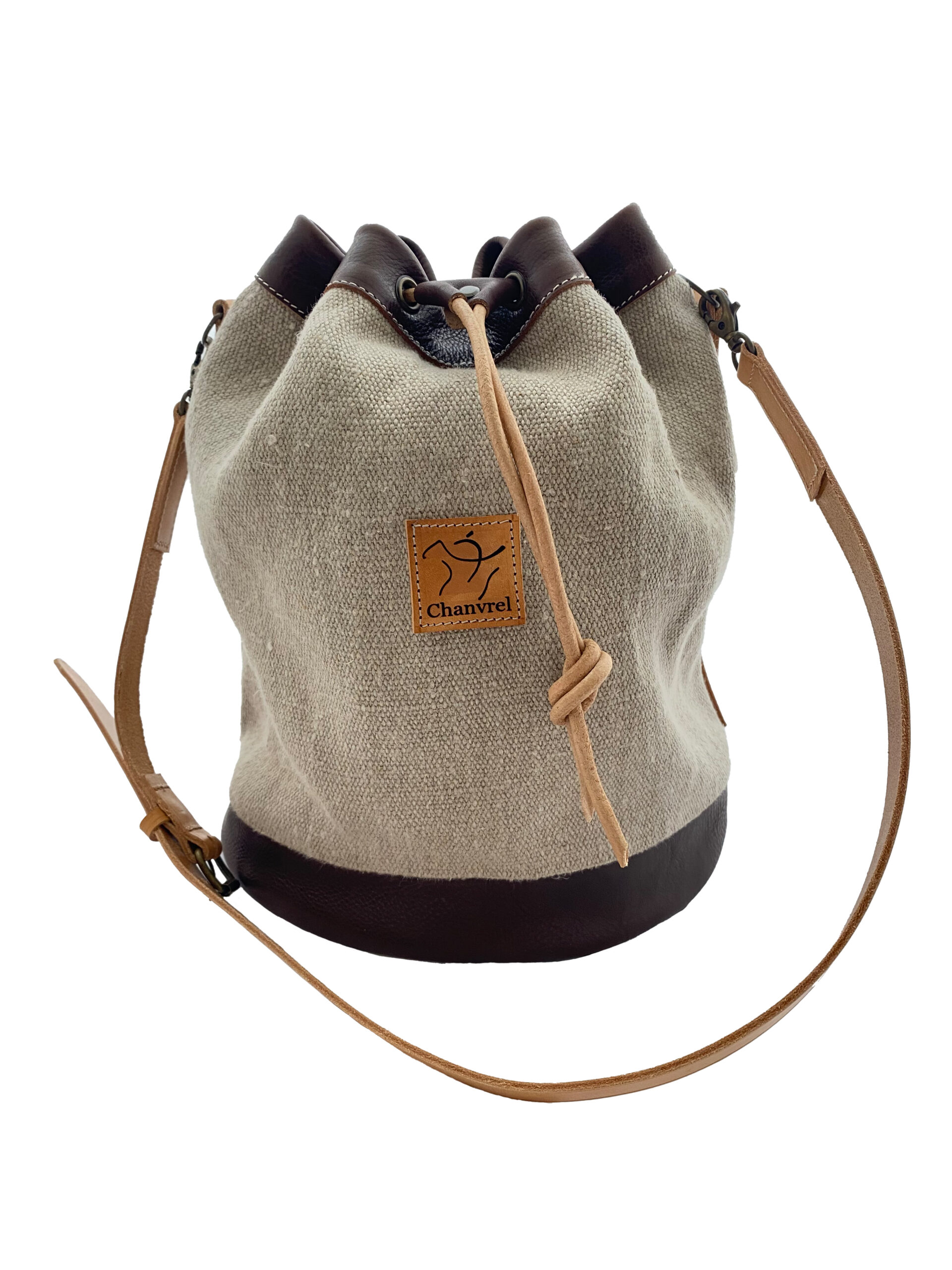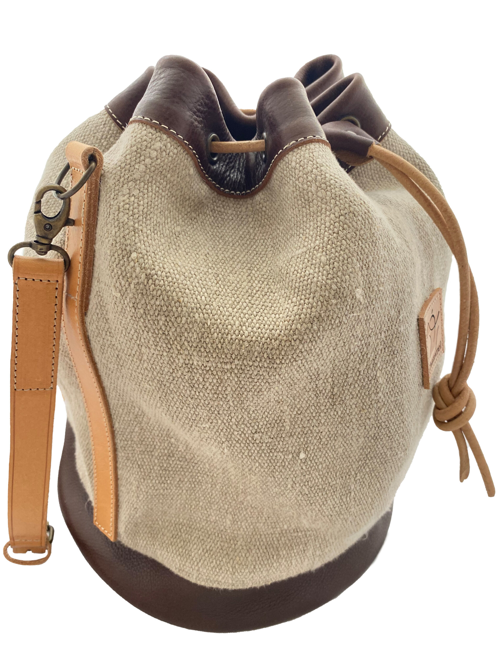 La couleur du cuir du fond et du bord du sac est au choix. Le cuir naturel n’a aucune teinte et se patine avec le temps.