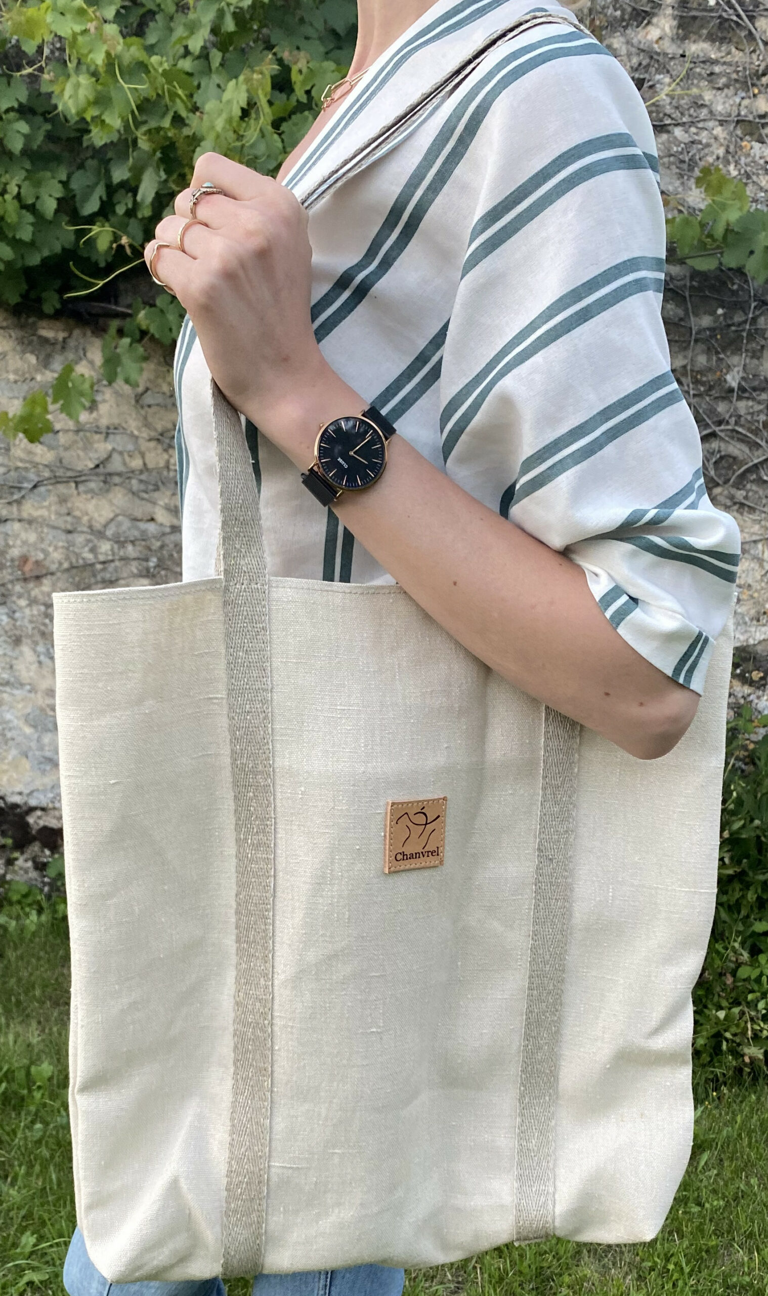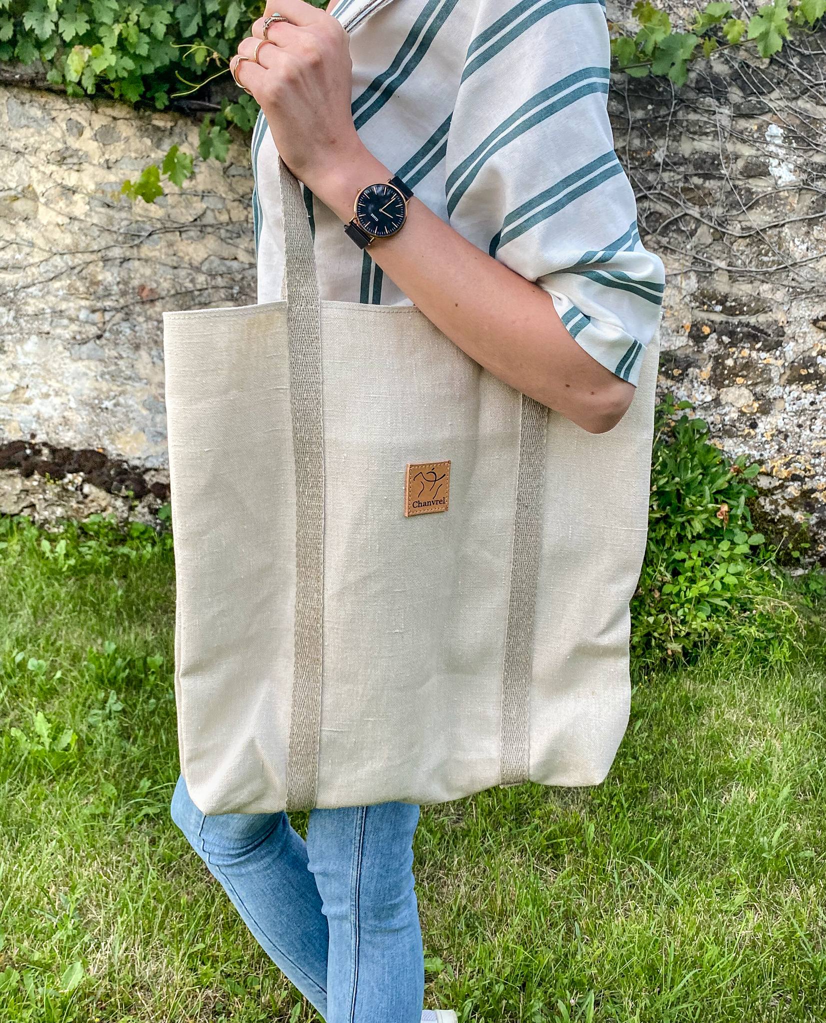 Entièrement en chanvre notre tote bag est particulièrement solide, les anses en lanière de chanvre font tout le tour du sac
