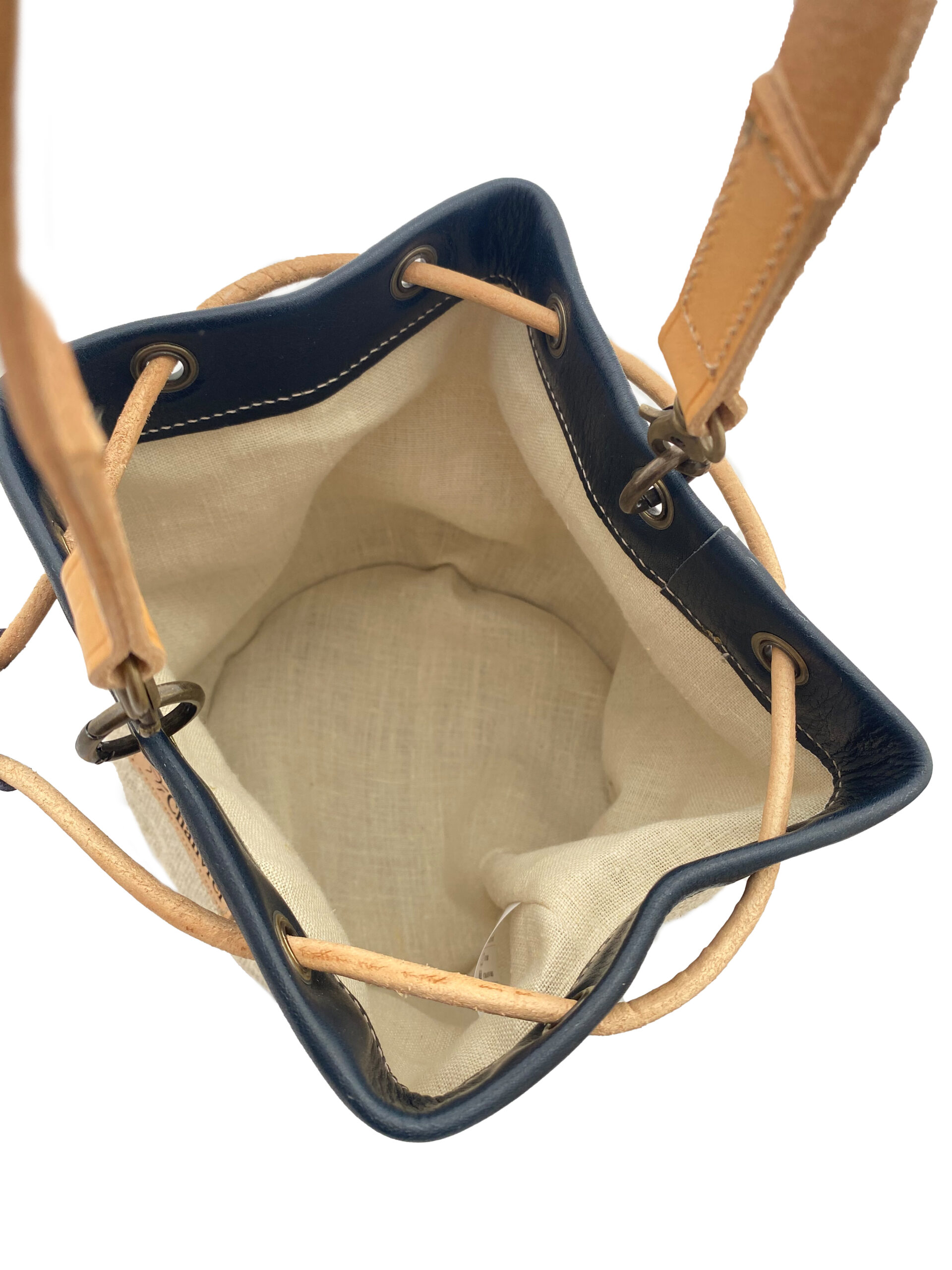 La bandoulière est toujours en cuir naturel (non teinté) et se patine avec le temps.